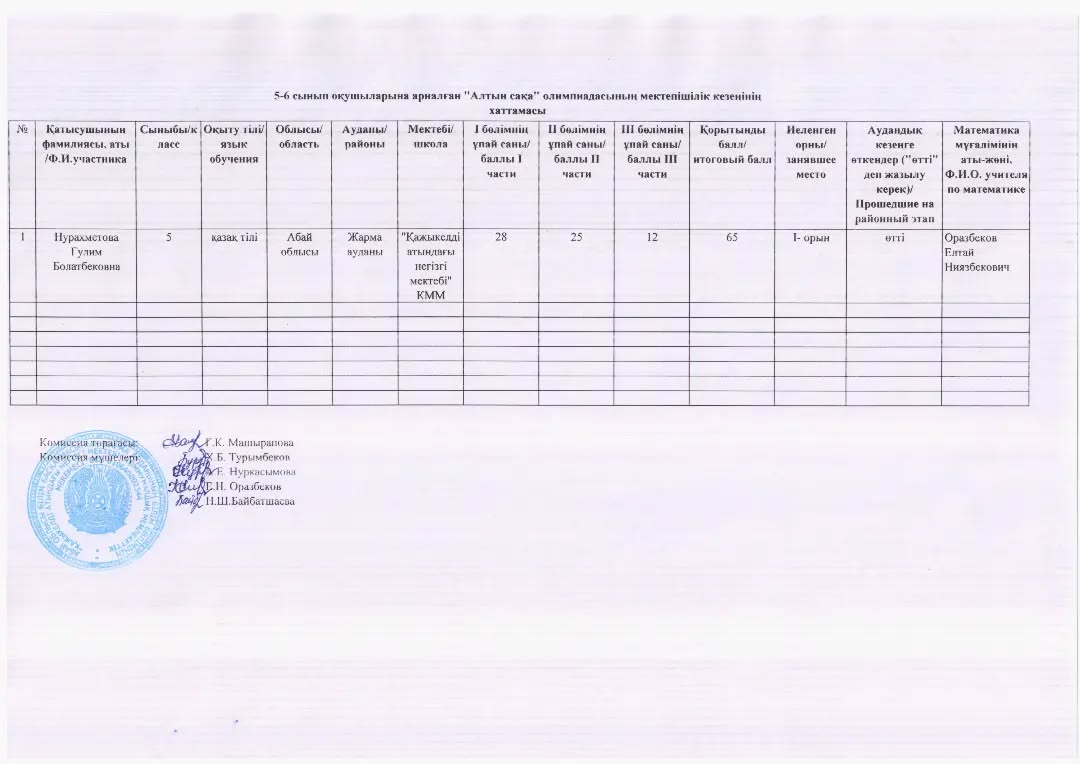 5 - 6 сынып оқушыларына арналған "Алтын сақа" олимпиадасының қорытындысы.