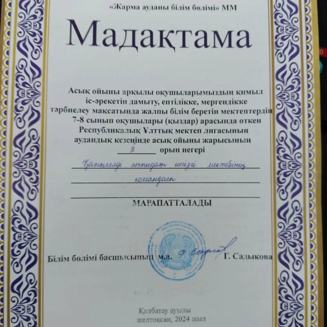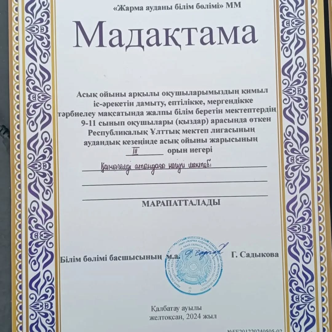 7 - 8 - сыныптар және 8 - 9 - сыныптар арасында өткен аудандық БЕС ТАС сайысында оқушы қыздарымыз жүлделі 2 - 3 - орынға ие болды.