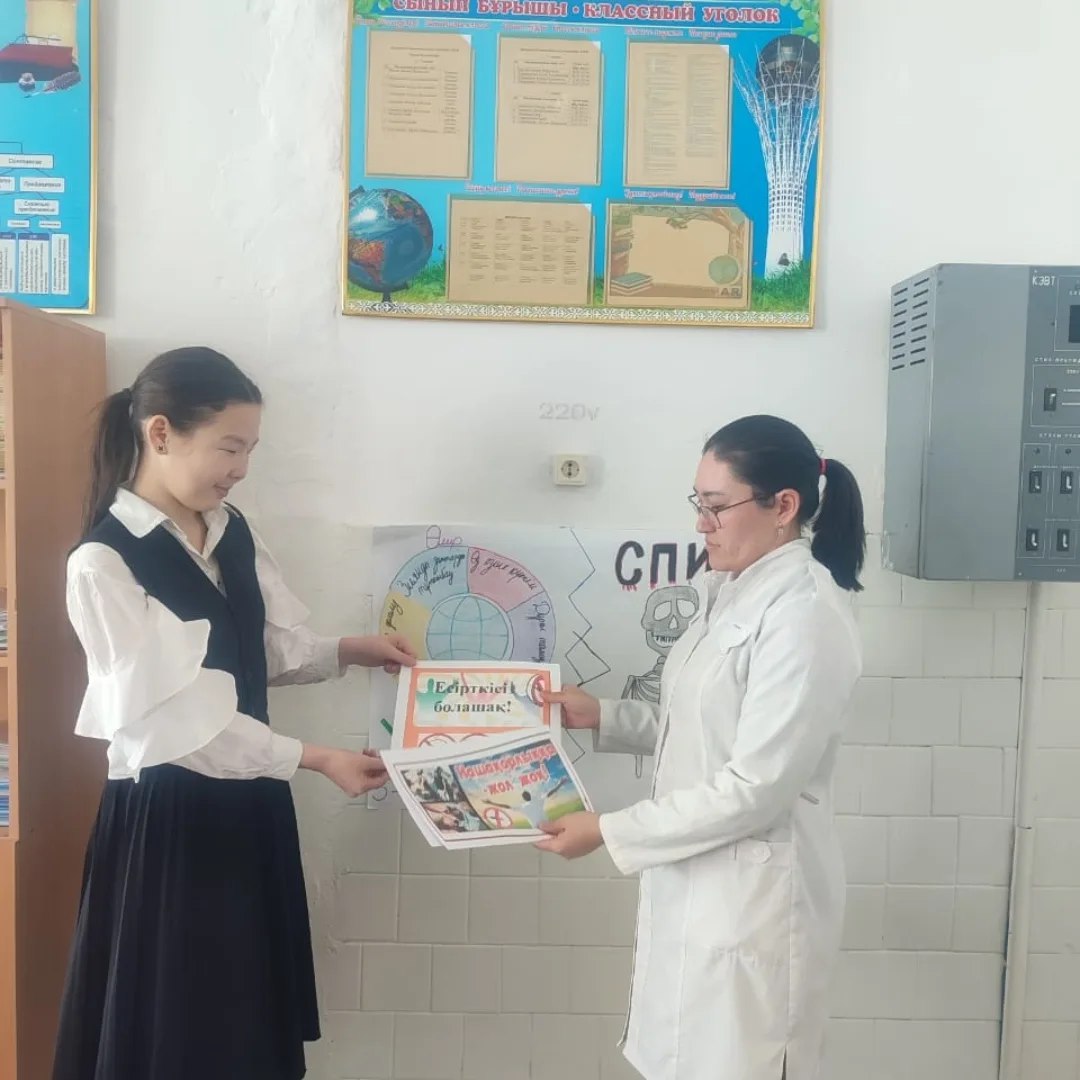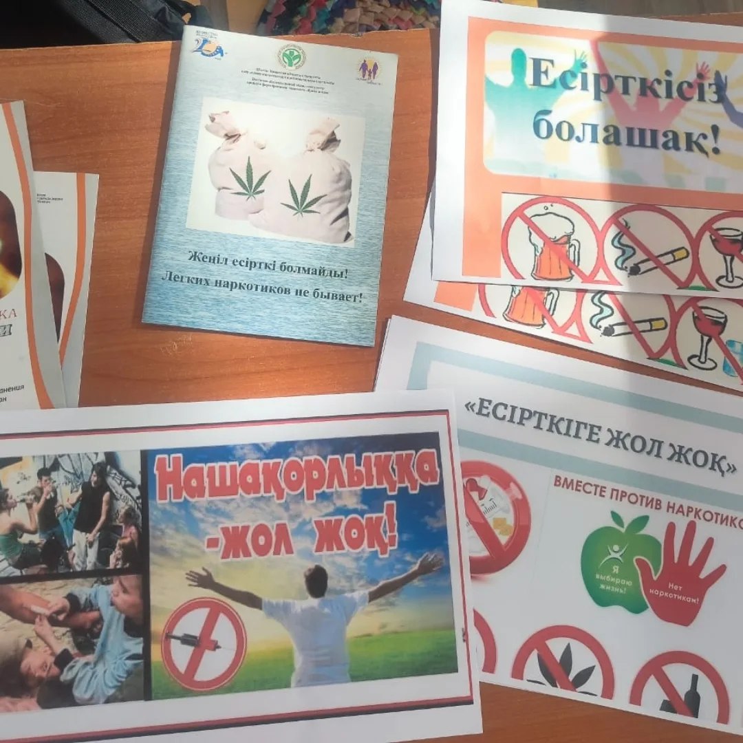 Салауатты өмір салтын насихаттау, балалардың физикалық ,психологиялық және эмоционалдық денсаулығына ықпал ету, оларды кез келген жаман әдеттен саналы түрде бас тартуға ынталандыру мақсатында “Есірткіге жол жоқ” атты тақырыпта мектеп медбикесі А.А.Мажакова білім алушылар арасында ақпараттандыру жұмысын жүргізіп, жадынамалар таратты.