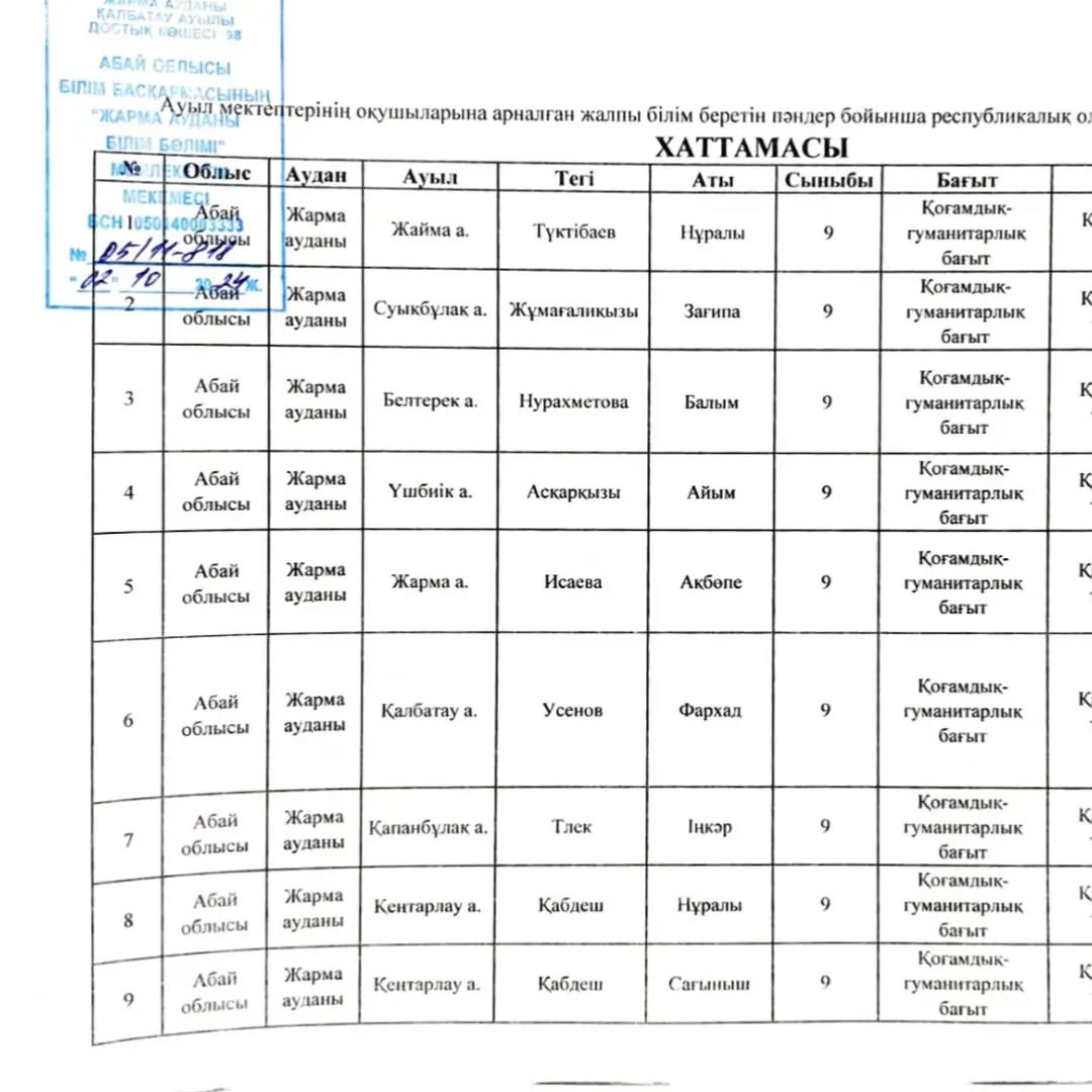 Ауыл мектептерінің оқушыларына арналған жалпы білім беретін пәндер бойынша республикалық олимпиаданың екінші ( аудандық) кезеңіне өткен қазақстан тарихы пәнінен 9 - сынып оқушысы Нұрахметова Балымды құттықтаймыз!!!